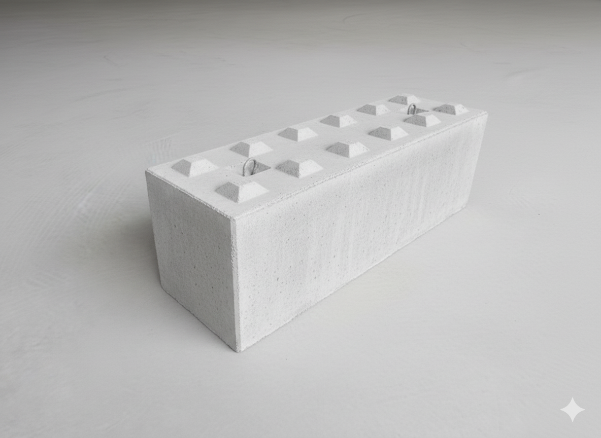 Przenoszenie bloków odbywa się z wykorzystaniem stalowych zaczepów (uszy), za które następnie unosi się blok i odstawia na wybrane miejsce za pomocą wszelkich maszyn mających udźwig około 1,5 t. (koparki, ładowarki, ciągniki czy wózki widłowe).